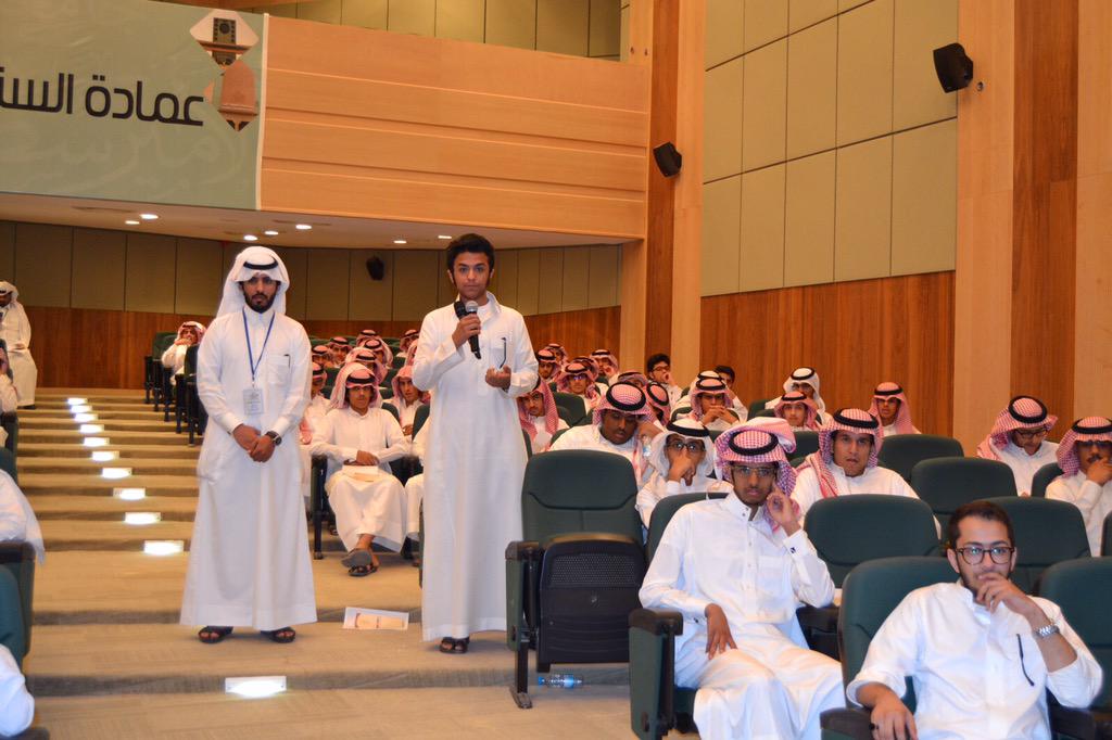 التقى سعادة الدكتور محمد سعيد القحطاني عميد تقنية المعلومات والتعليم عن بعد يوم الخميس الموافق 5\11\1436هـ بطلاب السنة التحضيرية وذلك ضمن الفعاليات التي تقيمها عمادة السنة التحضيرية لاستقبال الطلاب المستجدين.وفي مطلع اللقاء شكر الدكتور القحطاني الطلاب على حضورهم متمنيا لهم الفائدة منه، وعمادة السنة التحضيرية وعلى رأسها الدكتور مشاري بن عياد العصيمي على هذه الدعوة وهذا التنظيم، وكافة منسوبي عمادة تقنية المعلومات والتعليم عن بعد الذين يبذلون جهوداً متواصلة للرفع من مستوى الخدمات الإلكترونية التي من شأنها الارتقاء بنوعية الخدمات التي تقدمها الجامعة وتحقق أهدافها نحو التحول الإلكتروني. بعد ذلك بدأ سعادته عرضاً تقديمياً حول الخدمات الإلكترونية التي تقدمها الجامعة لطلابها، حيث شملت تلك الخدمات خدمة البريد الإلكتروني والخدمات الإلكترونية الأكاديمية مثل التسجيل والحذف والإضافة وبقية الحركات الأكاديمية التي يحتاجها الطالب في مسيرته التعليمية بالجامعة، وخدمات المكتبة ونظام التدريب الصيفي وخدمات الأنشطة الطلابية ونظام الدعم الفني وخدمات الشبكة اللاسلكية، مركزا سعادته على بوابة التعلم الإلكتروني التي تشمل أشهر نظم إدارة التعلم الإلكتروني (بلاك بورد) والذي يقدم حزمة من الخدمات للطالب وعضو هيئة التدريس منها خدمة الفصول الافتراضية وخدمة الاختبارات الإلكترونية ويوفر المحتويات الالكترونية والواجبات بالإضافة الى توفير منصة للنقاشات والإعلانات الدراسية، داعيا كافة الطلاب للاستفادة من هذه النظم والخدمات تيسيرا لهم ومواكبة لعصرهم الذي يعيشونه مع التقنية.وتجدر الإشارة إلى أن العمادة وزعت على الطلاب الحضور مطوية تتضمن نبذة عن الخدمات الإلكترونية التي تقدمها الجامعة للطلاب.