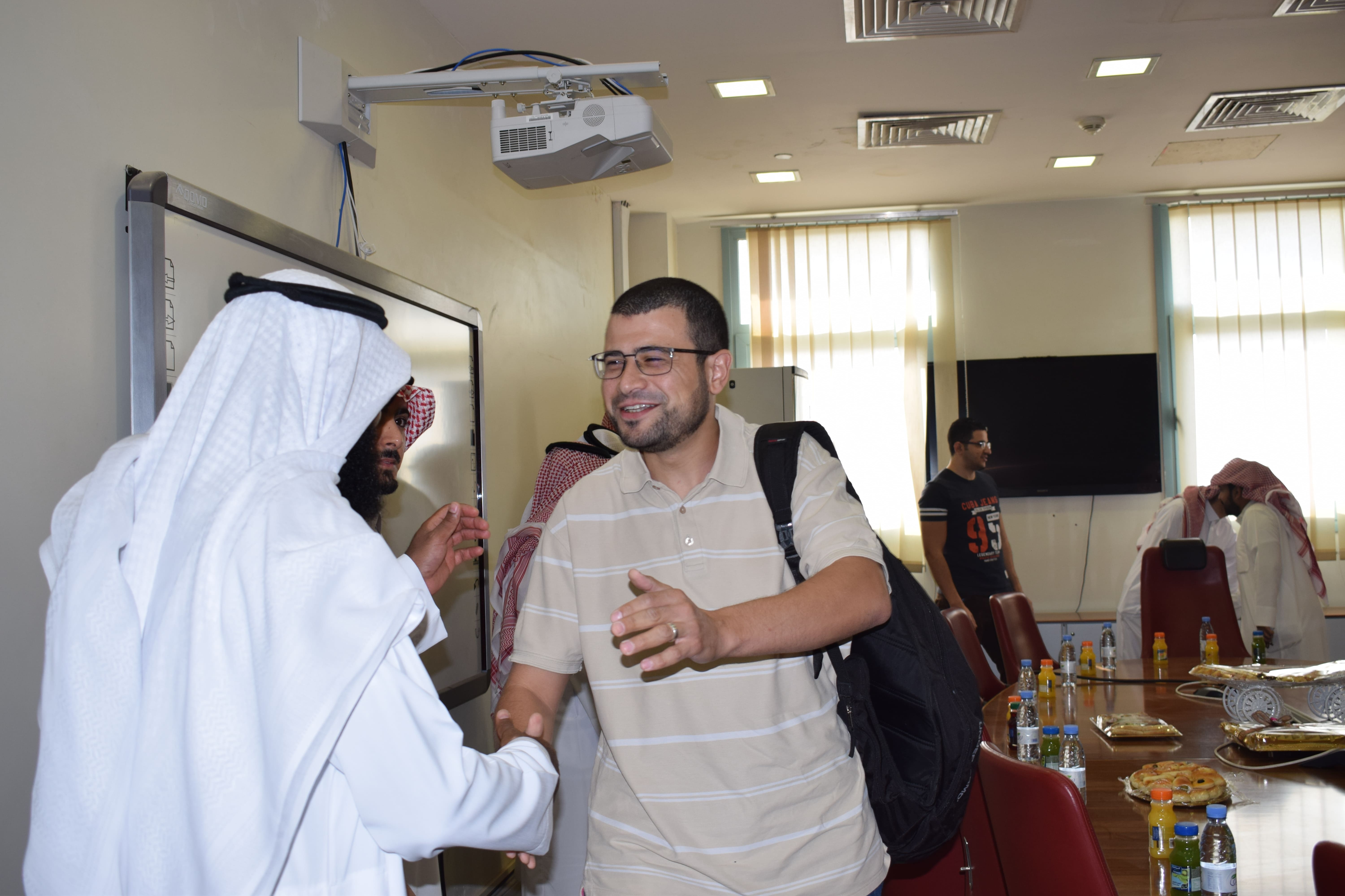 أقامت عمادة تقنية المعلومات والتعليم عن بعد صباح اليوم الأحد الموافق 6/10/1440هـ حفل معايدة لمنسوبيها بمناسبة عيد الفطر المبارك بحضور سعادة وكيل العمادة الدكتور عادل بن بصيص ومديري الإدارات ورؤساء الأقسام وكافة منسوبي العمادة.وقد تبادل الجميع التهاني والتبريكات بالعيد السعيد بعد العودة من الإجازة في جو من الود والصفاء والتآخي، وإنها فرصة سعيدة للالتقاء بجميع الزملاء بالعمادة لتهنئة بعضهم لبعض سائلين الله أن يعيده على الجميع باليمن والبركات والصحة والعافية متمنين للعمادة مزيداً من التألق والنجاح.