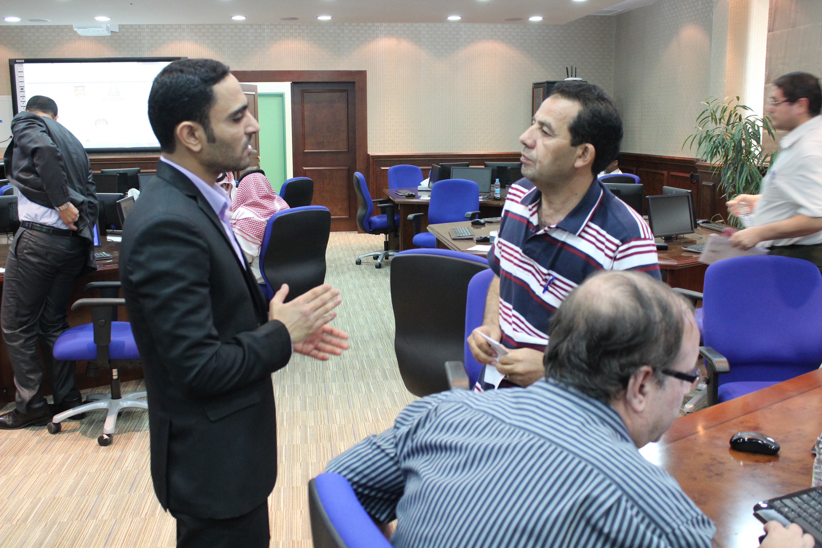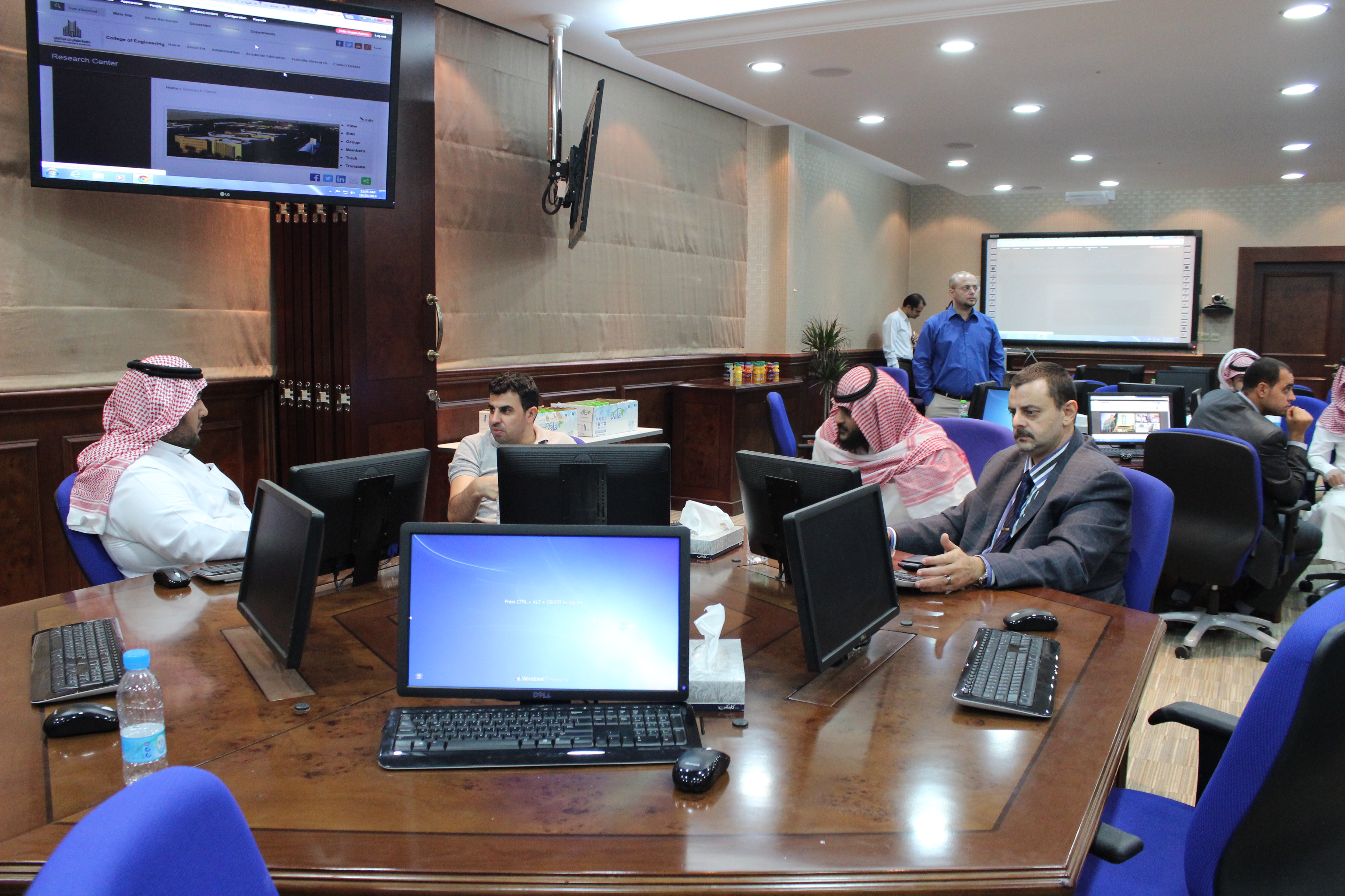 أقامت العمادة ممثلة بإدارة البوابة الإلكترونية للجامعة ورشة عمل تحت عنوان ( إدارة وتحرير المواقع الجامعية ) , حضرها 17 مشرفاً على المواقع الفرعية للجامعة وذلك يوم الخميس 27 ذي الحجة 1435. جرى في الورشة الحديث والنقاش عن أهمية التعاون بين مشرفي المواقع الفرعية وإدارة موقع الجامعة وضرورة تنسيق الجهود وتفعيل وإثراء المحتوى الإلكتروني من أجل الإرتقاء بمستوى موقع الجامعة نحو الصورة المأمولة. .كما ناقش فريق البوابة الإلكترونية مع الحضور من المحررين التقارير الدورية الأخيرة حول المحتوى الالكتروني لمواقع الجامعة وتناولوا فيها الوضع الحالي لموقع الجامعة والأخطاء الشائعة وأساليب الرقي بجودة المحتوى ..من جانبه أوضح مدير البوابة الإلكترونية أ. فراج بن فهد آل تركي أن هذه الورشة تعتبر الرابعة ضمن سلسلة متتابعة من ورش عمل تعقد بين إدارة البوابة الإلكترونية ومحرري المواقع الفرعية في إطار الجهود المبذولة لتطوير المواقع الجامعية , وأضاف أن الورشة القادمة ستعقد في غضون شهر وسيتم الإعلان عن موعدها في حينه
