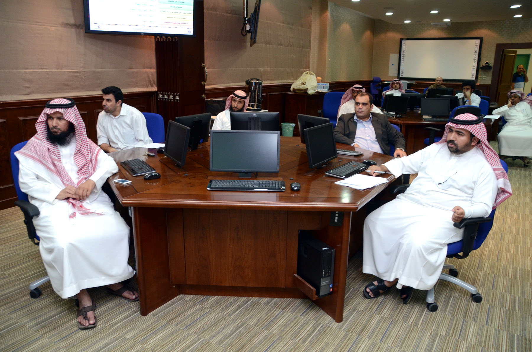 بحضور ورعاية سعادة عميد تقنية المعلومات والتعليم عن بعد الدكتور محمد بن سعيد القحطاني أقامت إدارة البوابة الإلكترونية للجامعة ورشة عمل تحت عنوان ( إدارة وتحرير المواقع الجامعية ) , حضرها 25 مشرفاً على المواقع الفرعية للجامعة . بدأت الورشة بكلمة لسعادة العميد د. محمد القحطاني تحدث فيها عن أهمية التعاون بين مشرفي المواقع الفرعية وإدارة موقع الجامعة وضرورة تنسيق الجهود وتفعيل وإثراء المحتوى الإلكتروني من أجل الإرتقاء بمستوى موقع الجامعة نحو الصورة المأمولة .